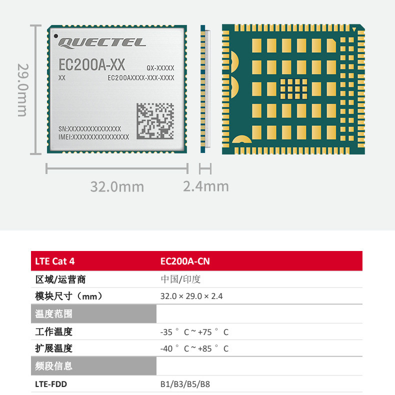 Η EC200A υποστηρίζει επίσης το πρότυπο πακέτο Mini PCIe για την κάλυψη των αναγκών των εφαρμογών προϊόντων σε διάφορες βιομηχανίες.,ισχυρή μεταλλική υφή, καλύτερη απώλεια θερμότητας, πληροφορίες που δεν είναι εύκολο να διαγραφούν και είναι πιο κατάλληλες για απαιτήσεις αυτοματοποίησης.
